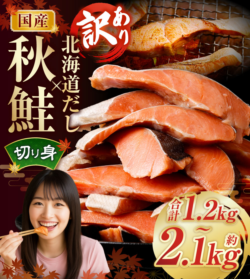 - 【ふるさと納税】<選べる内容量> 国産秋鮭 北海道だし切り身 合計 約1.2kg/約2.1kg 1枚あたり約70g 9000円 ~ 12000円 9000円 ~ 1万2000円 さけ サケ 魚介類 さかな 鮭節 秋鮭 しゃけ シャケ 魚 お魚 訳あり 訳アリ 切り身 切身 冷凍 茨城県 神栖市 送料無料