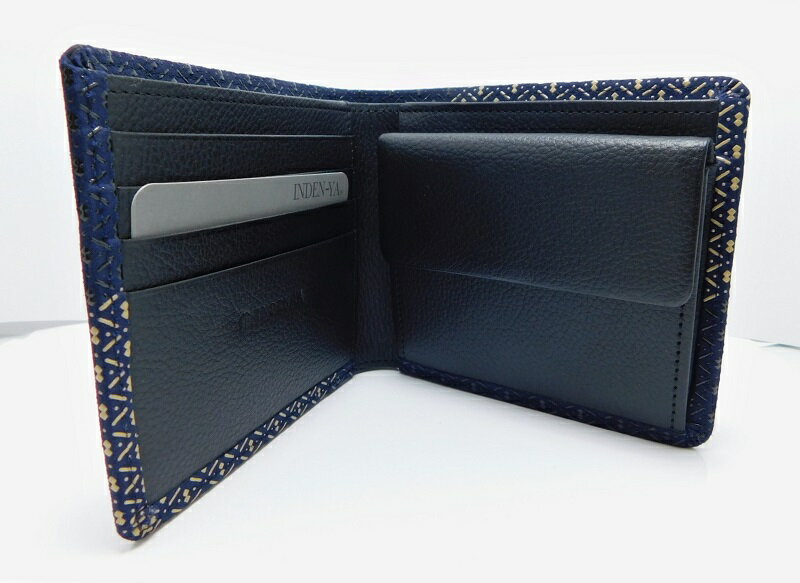 - 【ふるさと納税】財布 札入 印伝 メンズ 鹿革 甲州印伝 庵 いほり 革工芸品 紺 黒 白 バイカラー 漆 k001-320 送料無料