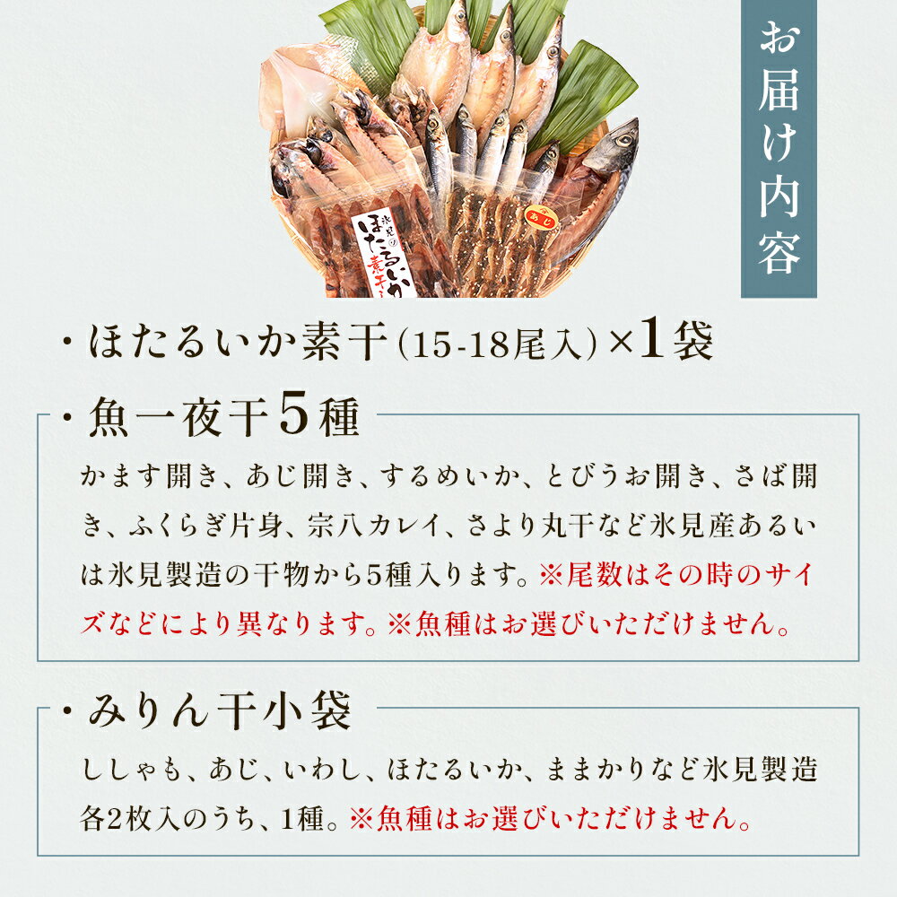 - 【ふるさと納税】《氷見堀与》一夜干5種とみりん干とほたるいかの素干
