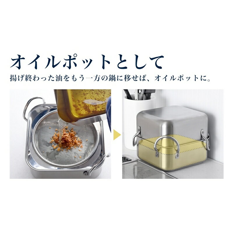 【ふるさと納税】 取っ手も場所を取らない油 (ユウ) ターン スクエア【 天ぷら鍋 四角 オイルポット 兼用 角型 揚げ鍋 揚げ物鍋 四角い鍋 ステンレス製 新潟県 燕市 燕三条 アーネスト株式会社 】