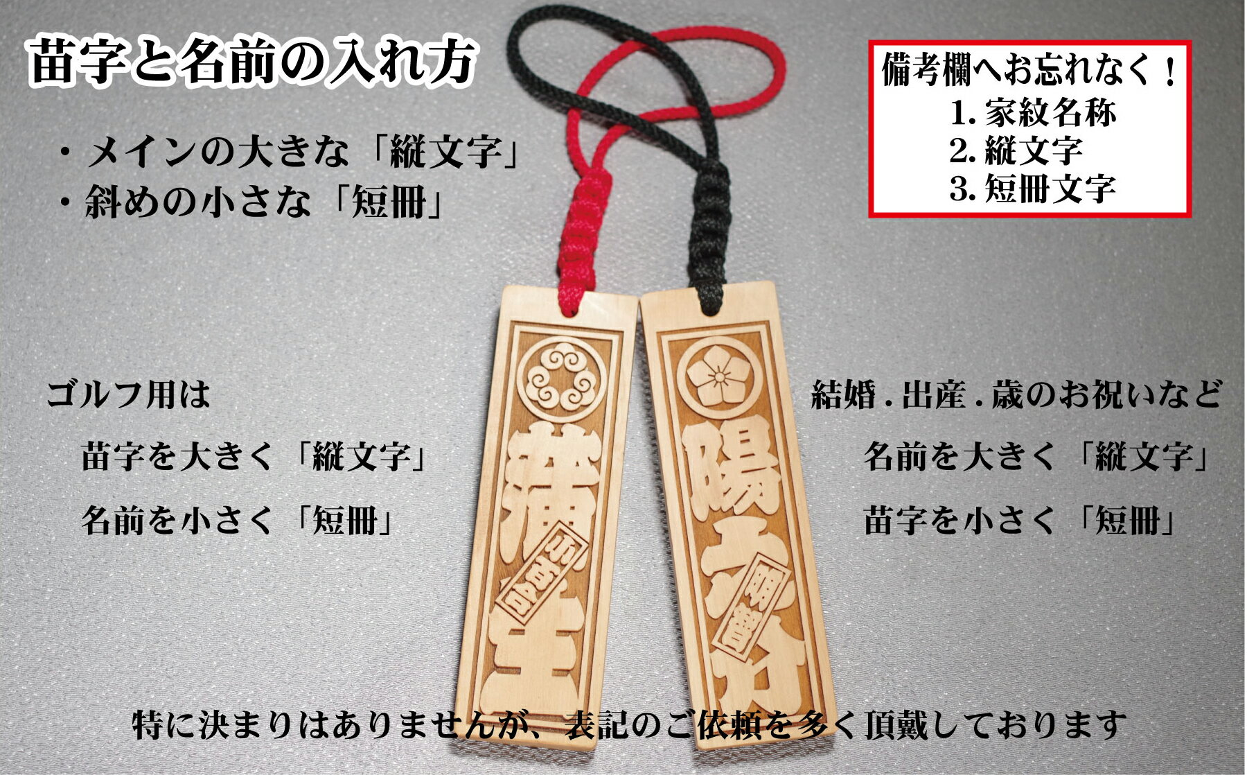 - 【ふるさと納税】ゴルフ用など◎和風ネームタグ彫刻木札【家紋・短冊入】御蔵島本黄楊(フダヤドットコム.五丁みりょう)ゴルフ 刻印 ネームプレート 定番サイズ 名入れ キーホルダー ゴルフ用品 バッグネームタグ 名札