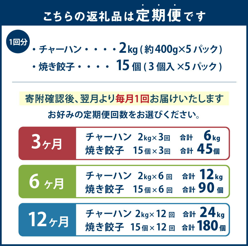 - 【ふるさと納税】<選べる定期便>東京食堂 の チャーハン と 焼き餃子 焼き餃子 合計45個~180個 チャーハン 合計約6kg~24kg ぎょうざ 炒飯 セット レンチン コシヒカリ 冷凍食品 レンジ調理 茨城県 惣菜 調理済 茨城県 神栖市 送料無料