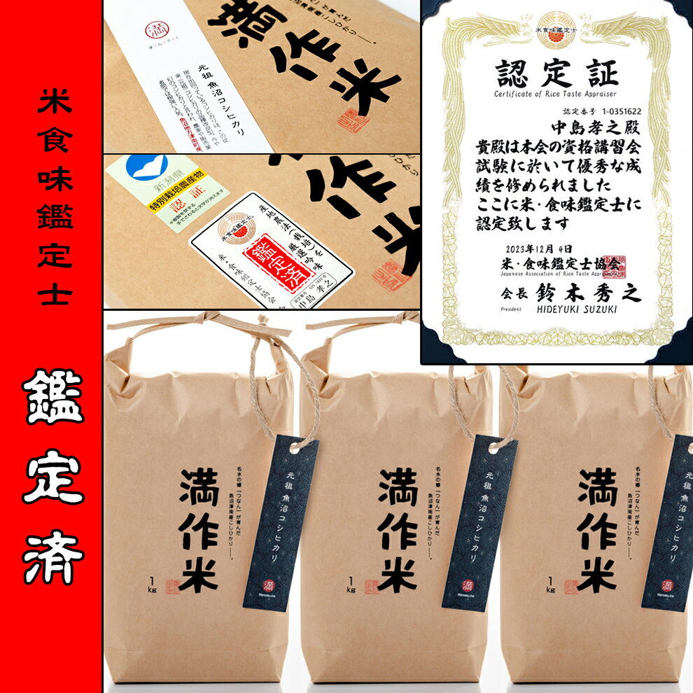 - 【ふるさと納税】 米 3kg ( 1kg × 3袋 ) 令和7年産 新米 魚沼産 コシヒカリ 県認証米 満作米 | ブランド米 こしひかり お米 おこめ こめ コメ おすすめ 人気 白米 精米 新潟県 津南町