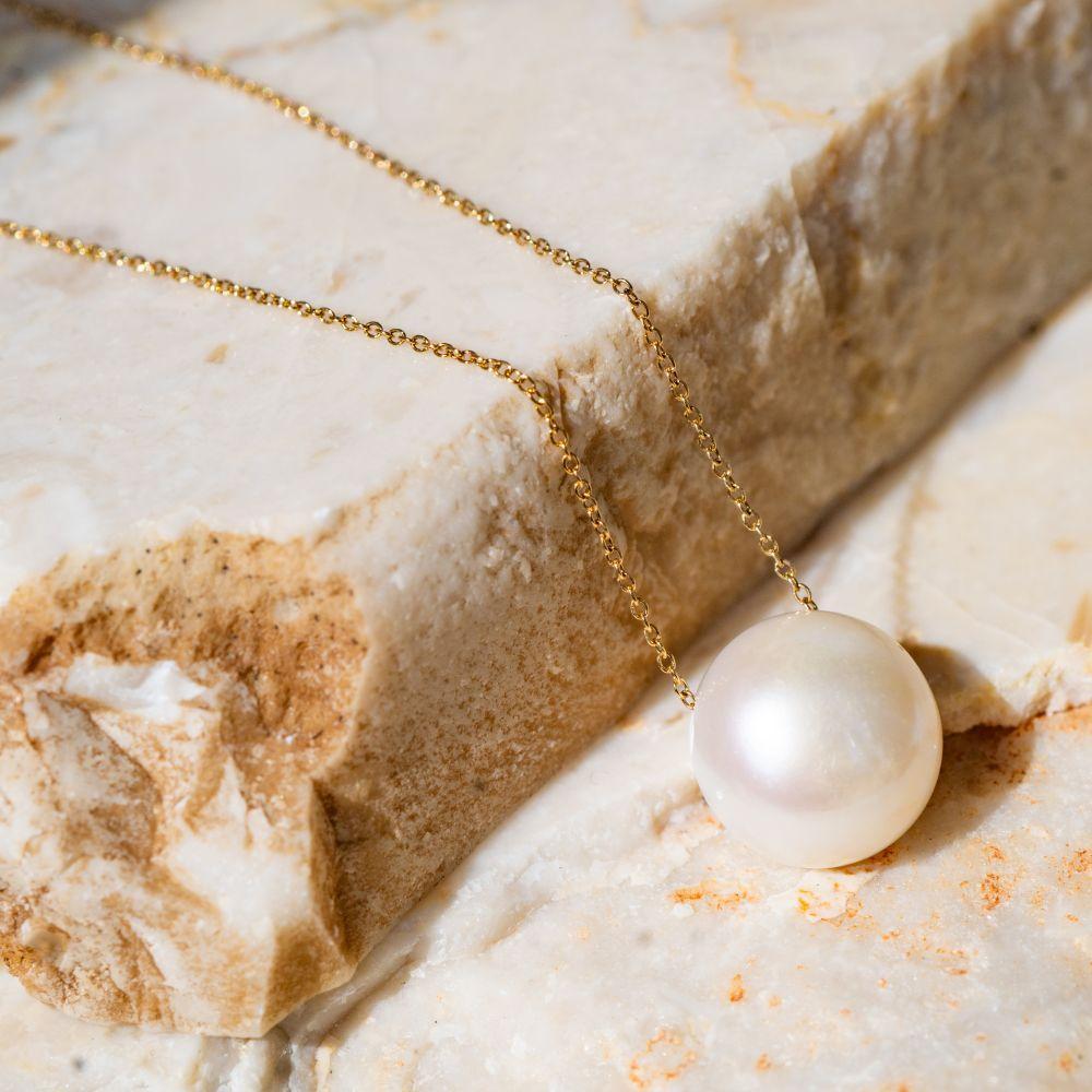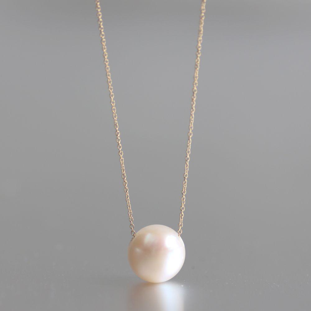 - 【ふるさと納税】大粒!10mmパールの一粒ジュエリー 淡水パールネックレス チェーンカラー:ゴールド サイズ:45cm PE001Y