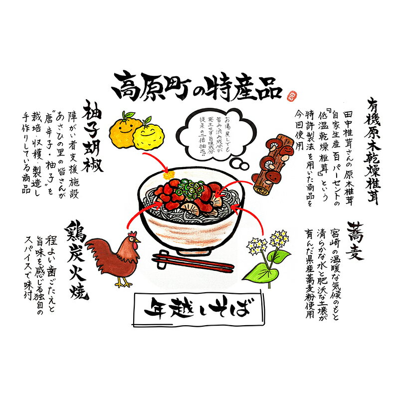 【ふるさと納税】限定800セット『年越しそばセット2025(5人前)』霧島山の麓で栽培した風味豊かな蕎麦を中心に鶏炭火焼・柚子こしょう・有機原木椎茸」をセットにした高原町の大地の恵みが詰まった逸品 オンラインワンストップ対応 宮崎県 送料無料