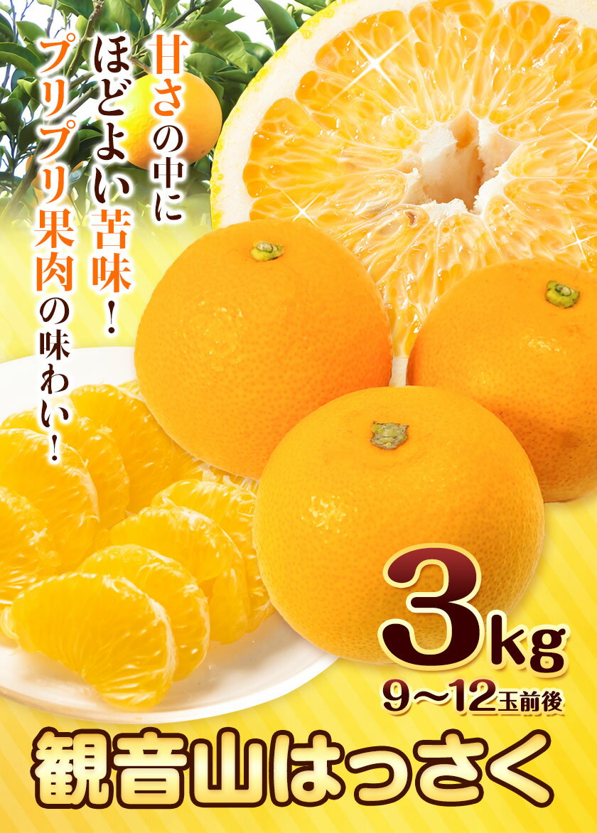 【ふるさと納税】観音山はっさく 3kg (約9玉-12玉前後) 有限会社柑香園《2026年1月上旬-3月中旬頃出荷》和歌山県 紀の川市 フルーツ 果物 柑橘 はっさく 八朔
