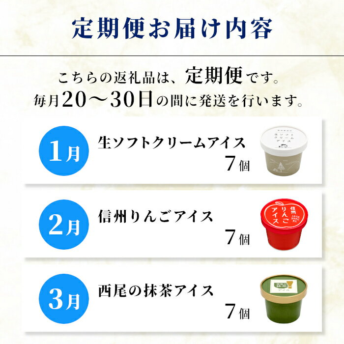 - 【ふるさと納税】 新フレーバー入り!全6回★全種類のアイスが届く!アイス定期便☆ 南信州根羽村産アイス が毎月7個届く! 合計42個 アイスクリーム ソフトクリーム バニラ 西尾 いちご 紅ほっぺ いちご りんご ブルーベリー 抹茶 ミルク 30000円 30,000円