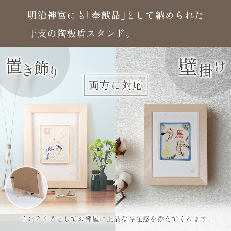 【ふるさと納税】干支の陶板盾スタンド (壁掛け/置物)1個 インテリア オリジナル 陶芸 一点物