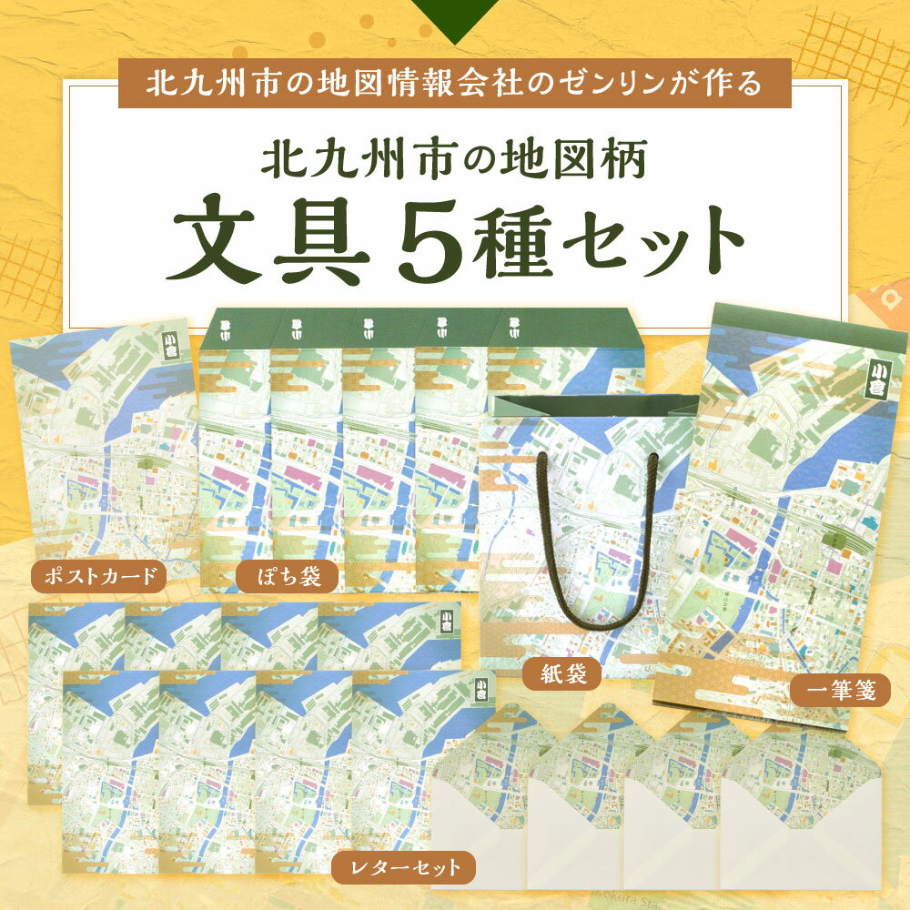 【ふるさと納税】地図柄 文具 5種セット (北九州市) ぽち袋 一筆箋 レターセット ポストカード 紙袋 セット 文房具 お手紙 おしゃれ 地図 風景 景色 国産 福岡県北九州市 【ZENRIN】