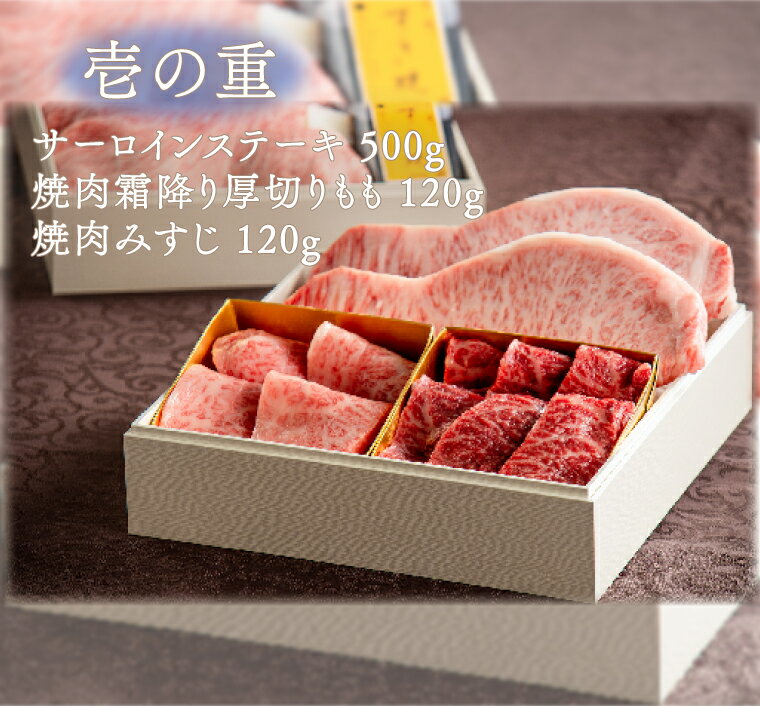 【ふるさと納税】お中元 食べ物 国産 肉 常陸牛を詰め合わせた高級お肉重 小梅 -koume- こうめ 重箱 風呂敷包み 肉おせち A5 高級 霜降り サーロイン ステーキ すき焼き 焼肉 希少部位 みすじ 内祝い 結婚 出産(DU-1)
