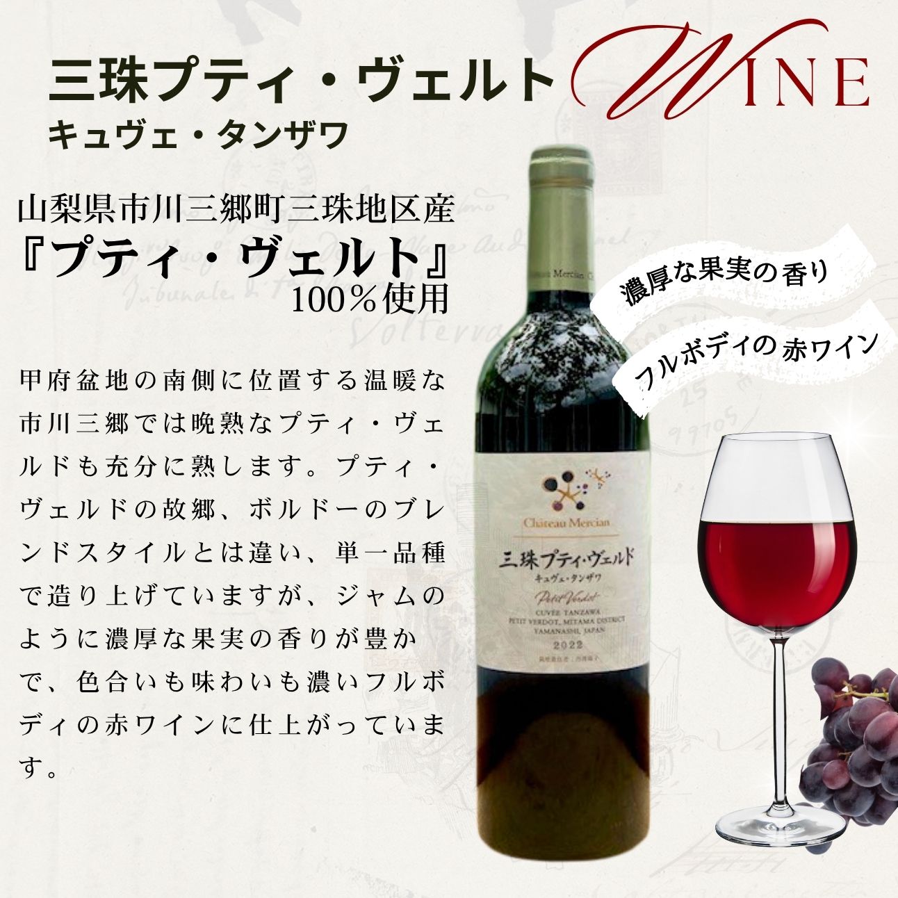 - 【ふるさと納税】ワイン 赤ワイン 山梨 750ml 「三珠プティ・ヴェルド キュヴェ・タンザワ」 シャトー・メルシャン [5839-2265]