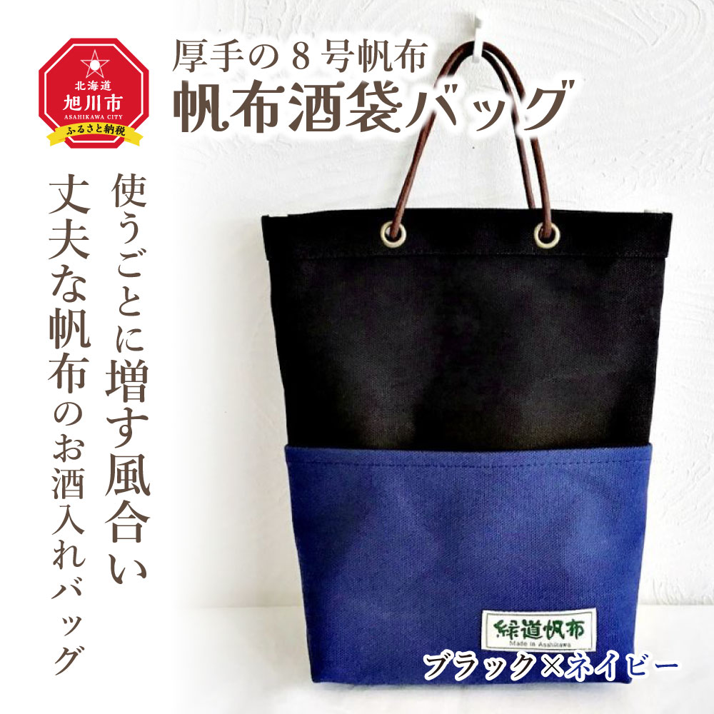 【ふるさと納税】帆布酒袋バッグ カラー:ブラック×ネイビー_01418 | 帆布 酒袋 トートバッグ 鞄 買い物袋 エコバッグ バッグ 旭川市ふるさと納税 北海道ふるさと納税 旭川市 北海道 送料無料