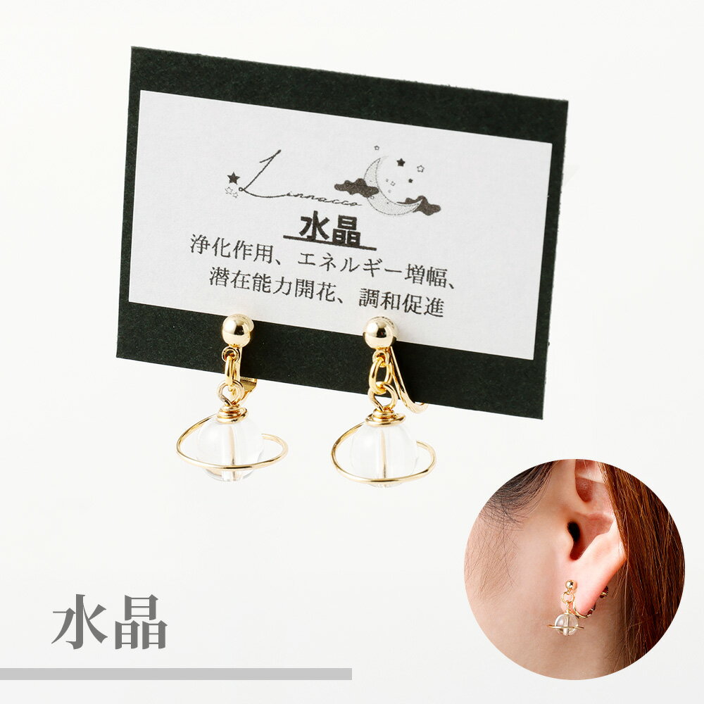 - 【ふるさと納税】【種類が選べる】土星イヤリング 1個 天然石ビーズ パワーストーン 水晶 シトリン ダルメシアンジャスパー ロードクロサイト ターコイズ 両耳用 サージカルステンレス 幅2cm アクセサリー ファッション レディース 宇宙 女性 楽天スーパー SALE 9月開催