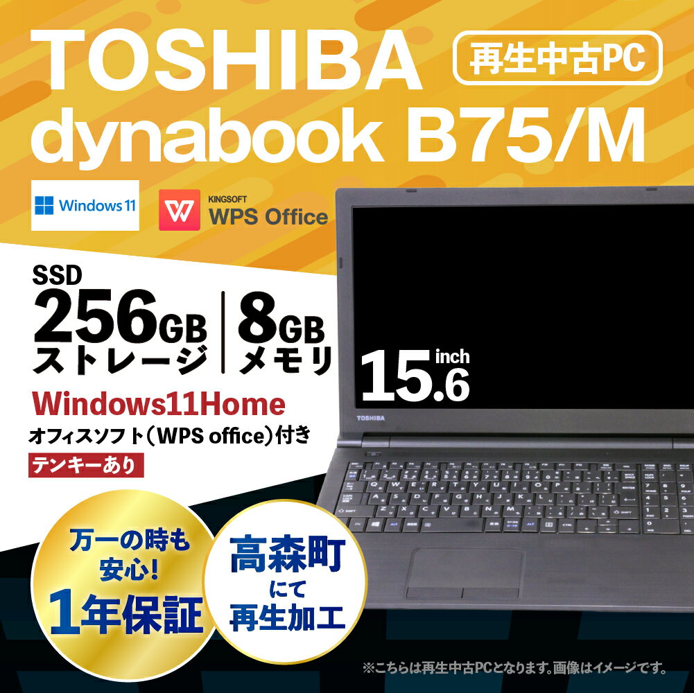 - 【ふるさと納税】再生品 ノートパソコン dynabook_B75/M テンキー有り K006599 1台 約2.4kg Windows11Home メモリ8GB 256GB 15.6/FHD Corei7-8650U THOSHIBA PC ビジネス 熊本県 高森町 送料無料