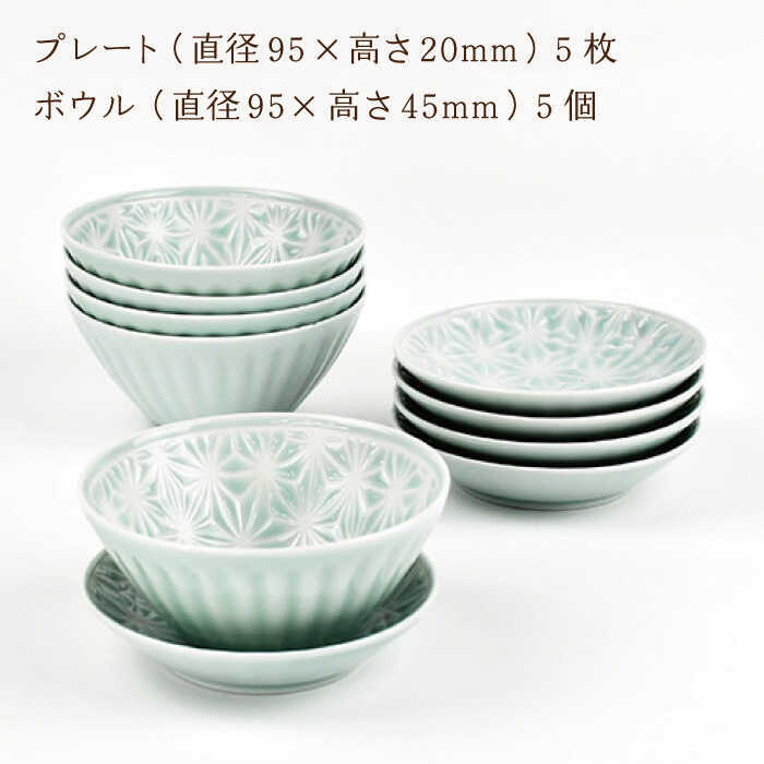 【ふるさと納税】【波佐見焼】麻の葉 ブルー プレート ボウル Sサイズ 各5個 計10個【聖栄陶器】[TG24]