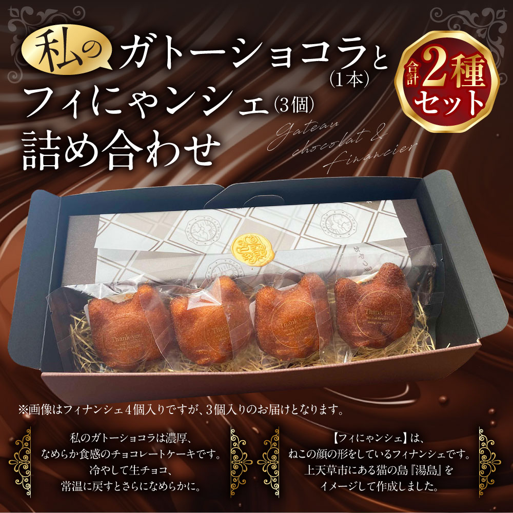 - 【ふるさと納税】私のガトーショコラとフィにゃンシェ 詰め合わせ 3個入り 化粧箱 ガトーショコラ チョコレートケーキ チョコケーキ ケーキ フィナンシェ 詰合せ セット スイーツ 菓子 お菓子 洋菓子 焼き菓子 焼菓子 上天草市 冷蔵 送料無料