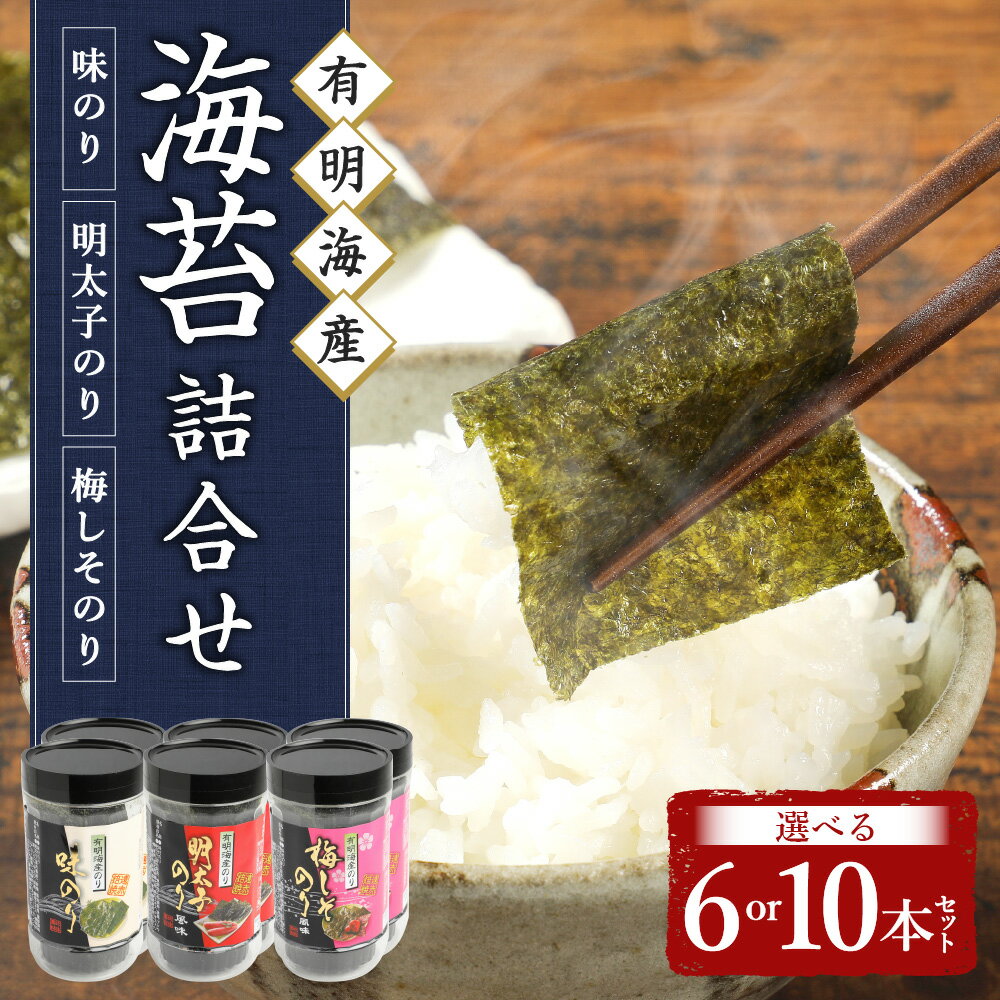 - 【ふるさと納税】<選べる内容量>有明海柳川産 海苔詰め合わせ 3種類セット 計6本・計10本 味付のり・梅しそ風味味付のり・明太子風味味付のり 1本あたり板のり3枚分/10切30枚 のり 味のり 味付け海苔 有明海苔 ウメ めんたいこ おにぎり 国産 福岡県 うきは市 送料無料