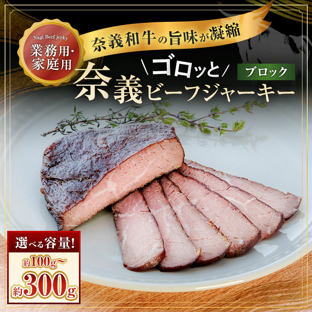 【ふるさと納税】<選べる内容量>【持ち運べるステーキ】奈義和牛の旨味が凝縮された ゴロッと奈義ビーフジャーキー ブロック 1パック・3パック 100g・計300g 【業務用・家庭用】 なぎビーフ 牛肉 和牛 干し肉 お肉 塩 ハーブ おつまみ お酒のお供 岡山県産 国産 送料無料