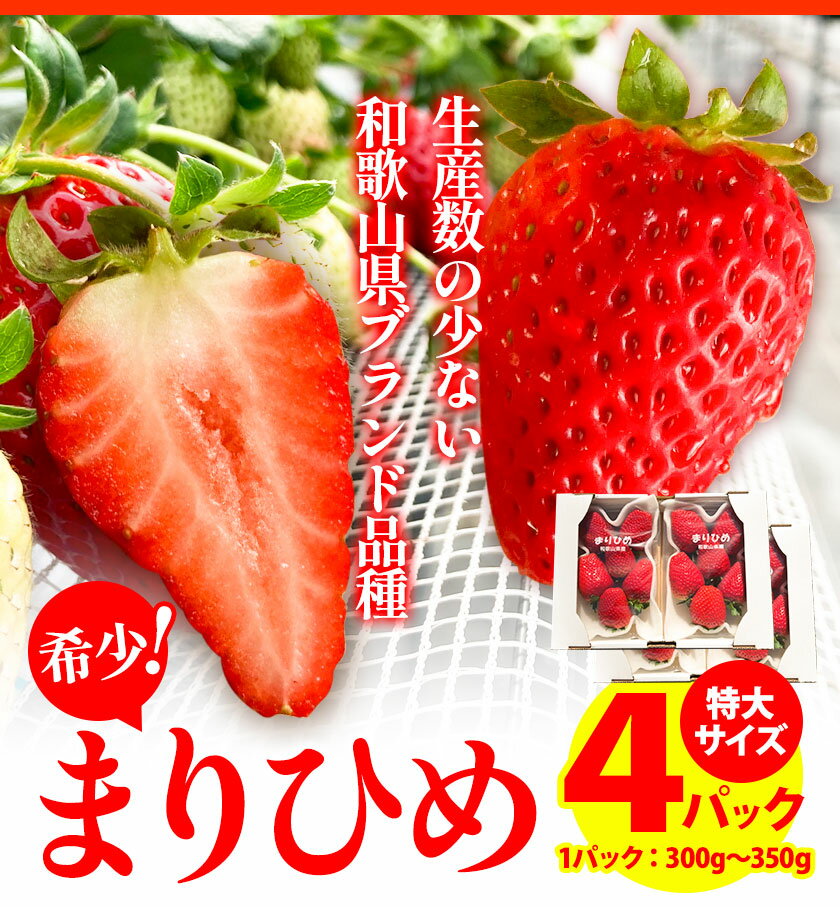 - 【ふるさと納税】希少!まりひめ 特大サイズ 約300g〜350g×4パック きよ農園《2026年1月中旬-3月下旬頃出荷》 和歌山県 日高町 いちご 苺 まりひめ フルーツ 果物 スイーツ 送料無料