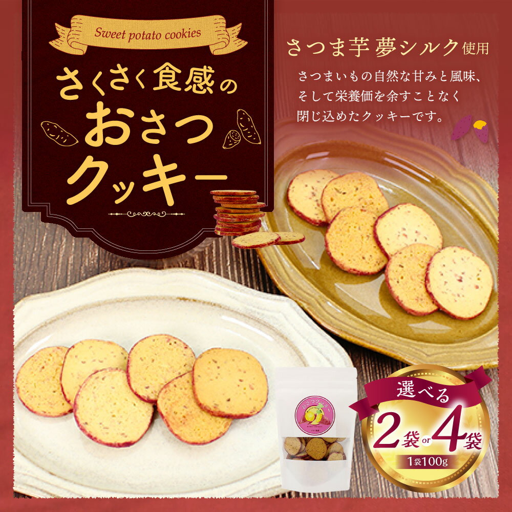 - 【ふるさと納税】<選べる内容量>おさつクッキー 計200g(100g×2袋)・計400g(100g×4袋) さつまいも サツマイモ さつま芋 夢シルク クッキー お菓子 洋菓子 焼き菓子 スイーツ おやつ 一口サイズ お子様 お年寄り 国産 大阪府 阪南市 送料無料