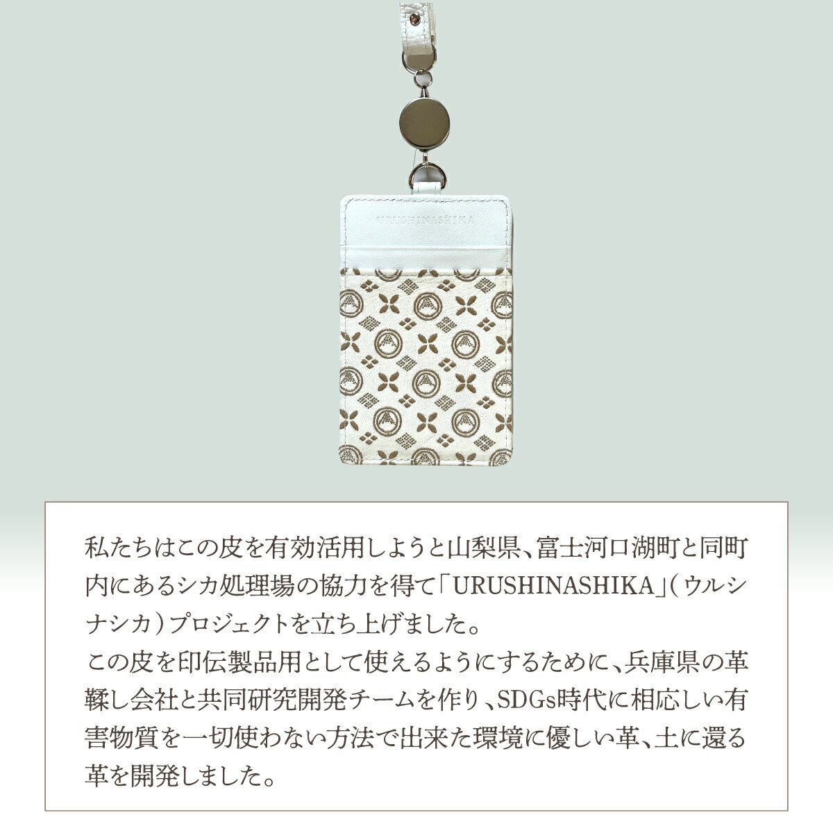 - 【ふるさと納税】 白い甲州印伝「URUSHINASHIKA」パスケース(リール付き) ふるさと納税 カードケース カード入れ オフィス かっこいい かわいい 鹿 しか シカ 甲州印伝 山梨県 富士河口湖町 送料無料 FCR006