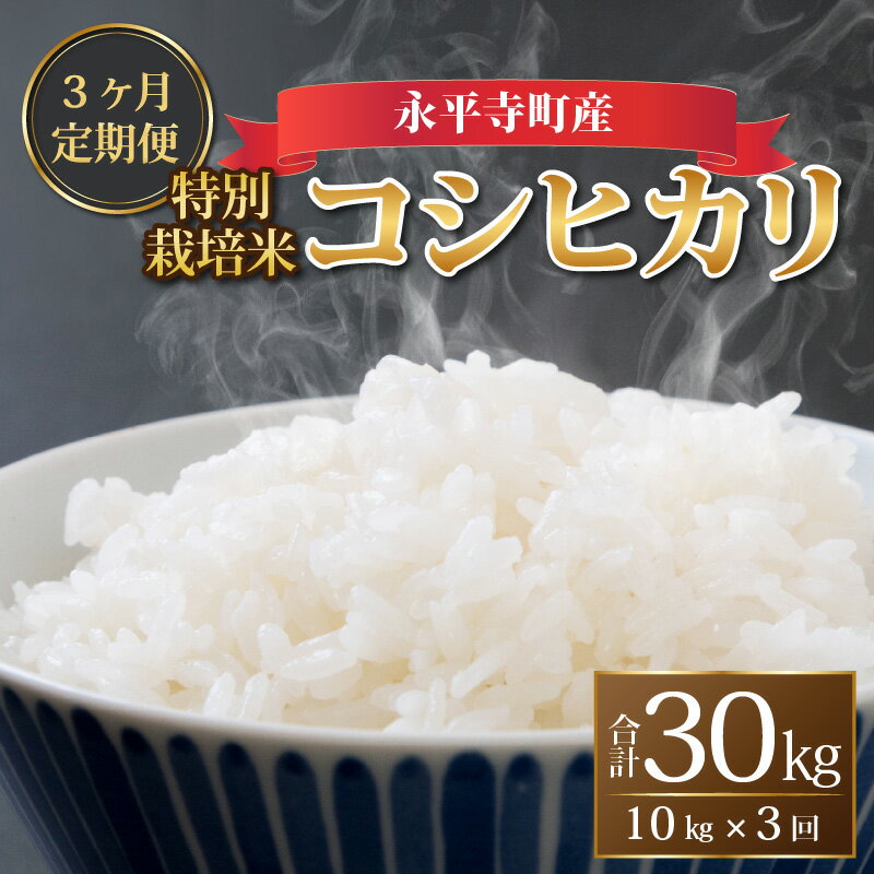 - 【ふるさと納税】【先行予約】【3ヶ月定期便】【白米】 令和7年度産 永平寺町産 農薬不使用・化学肥料不使用 特別栽培米 コシヒカリ 10kg×3ヶ月 計30kg 10月上旬より順次発送 頒布会 無農薬 こめ ごはん 精米 定期便 10キロ 10kg 米 米 お米 コメ 送料無料 こしひかり 福井
