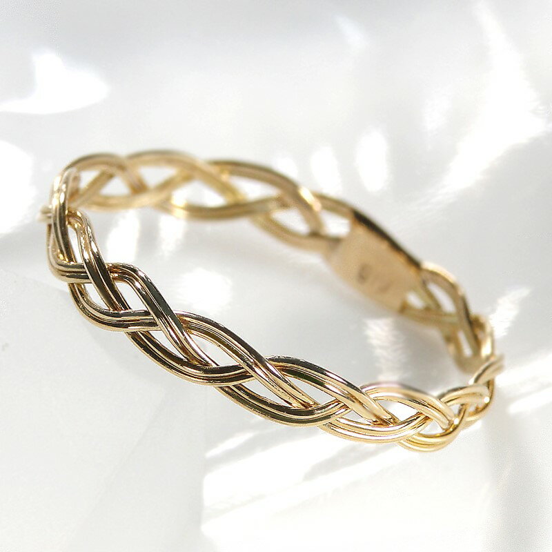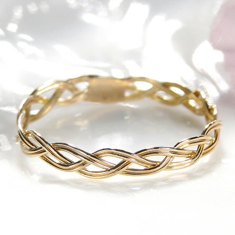 - 【ふるさと納税】< 甲府ジュエリー > リング 指輪 ジュエリー レディース アクセサリー K18 イエローゴールド 約 3.0mm 手作り 編み込み 透け感 上品 重ね着け ピンキーリング対応 ギフト プレゼント ジュエリーケース付 保証書付 k298-020
