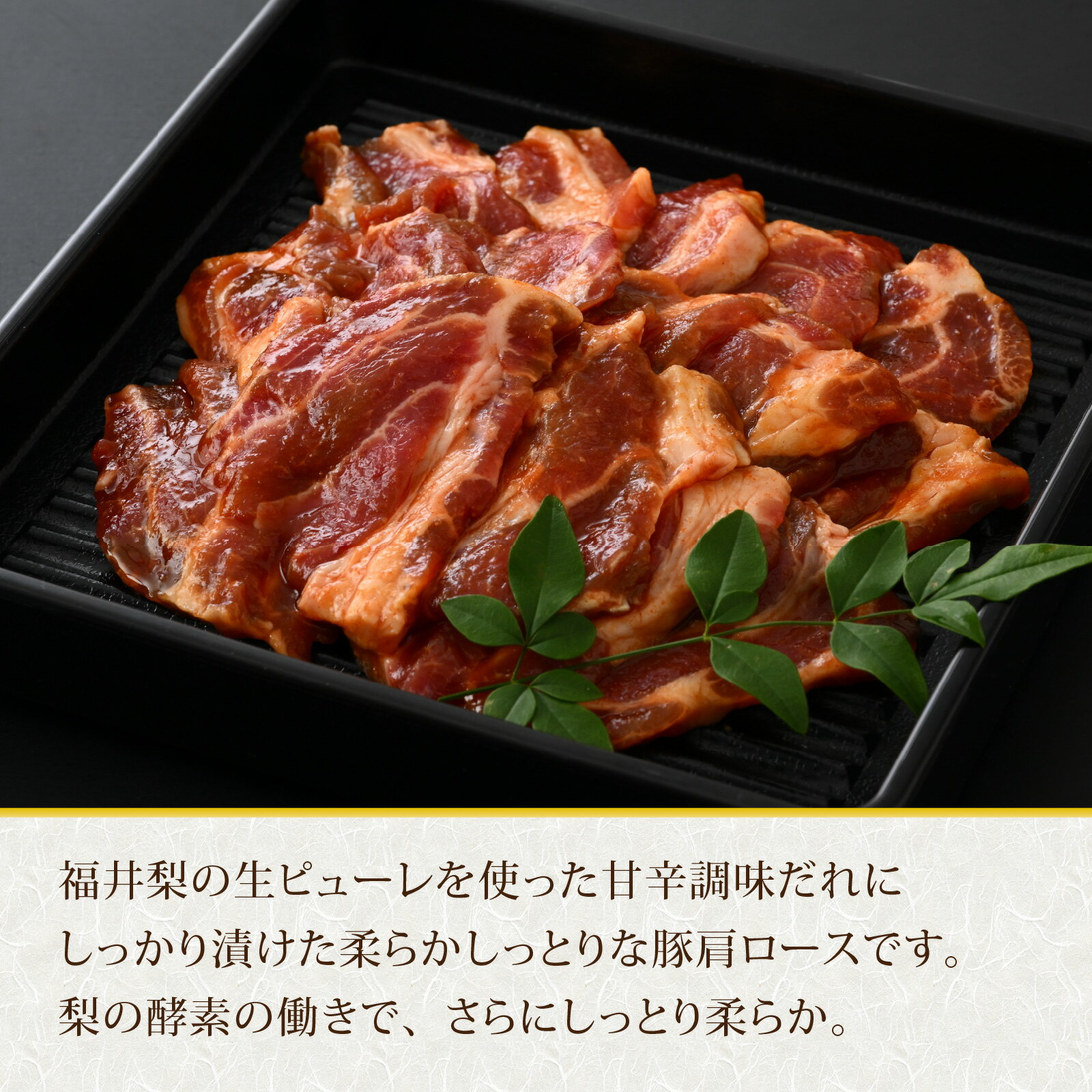 【ふるさと納税】福井梨だれ漬豚焼肉 計600g [A-108003] / 肉 豚肉 肩ロース 冷凍 国産 ホクチク 真空パック キャンプ アウトドア バーベキュー フェス BBQ ブランド肉 福井 のし送料無料