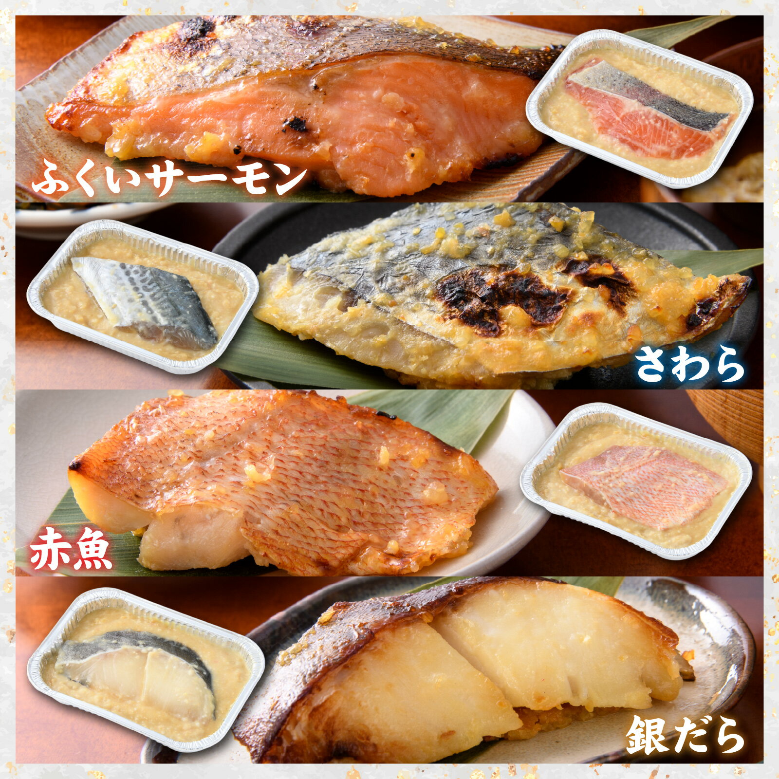 【ふるさと納税】 お皿いらず そのまま焼くだけ! 骨取り 西京漬け 4種4切れセット [A-088064] / 西京焼 西京焼き焼き魚 焼魚 焼くだけ 簡単 アレンジ レジピ 手軽 一人暮らし 鮭 サーモン さわら 鰆 赤魚 銀ダラ たら 西京 味噌