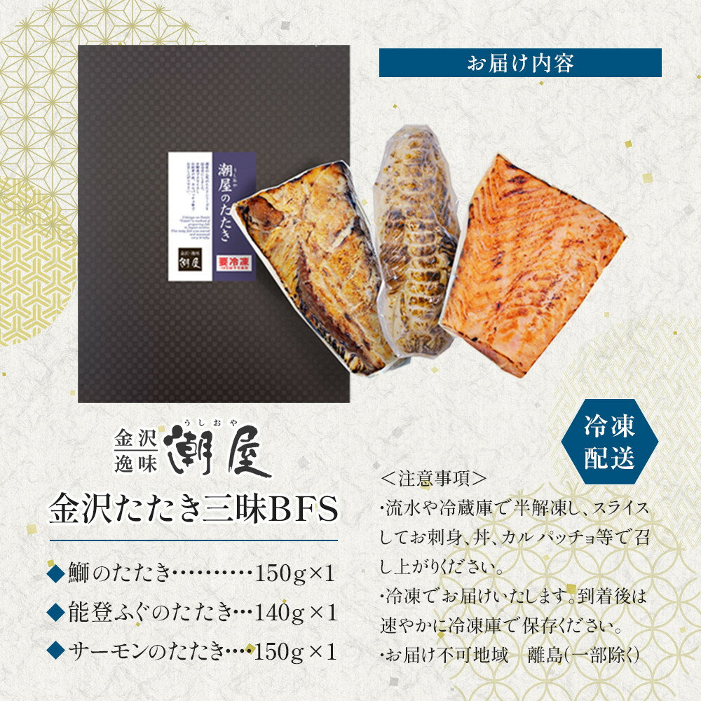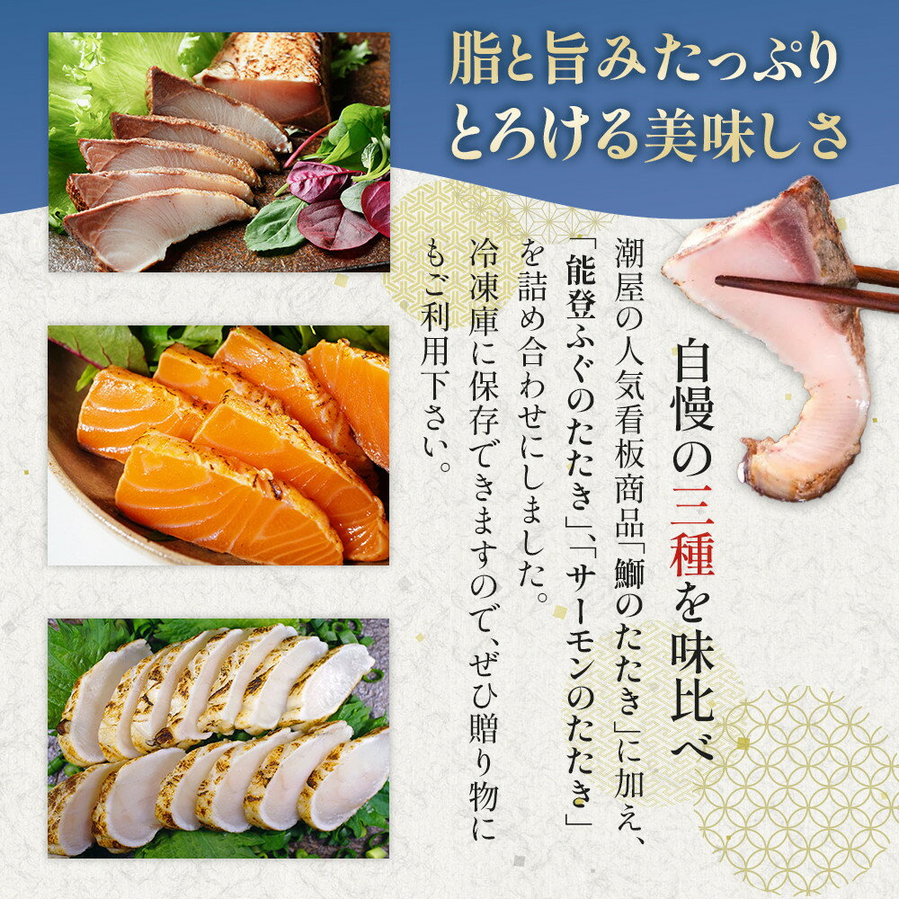 - 【ふるさと納税】潮屋金沢たたき三昧BFS | 冷凍 魚貝類 鮭 サーモン お魚 さかな 食べ比べ 和食 お惣菜 お酒のあて 食品 金沢市 たたき 鰤 産地直送 人気 おすすめ 送料無料