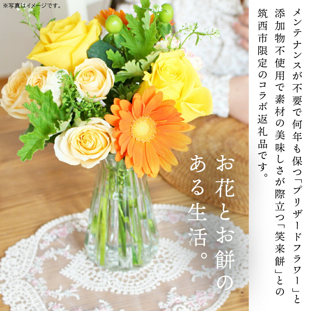 【ふるさと納税】【 筑西市 ふるさと納税限定 コラボ 】 《 花色 おまかせ プリザーブド フラワー S 》《 笑来餅 2個 セット(白2個) 》 アレンジメント 生花 ギフト プレゼント 誕生日 記念日 敬老 餅 もち もち米 [ZZ048ci]