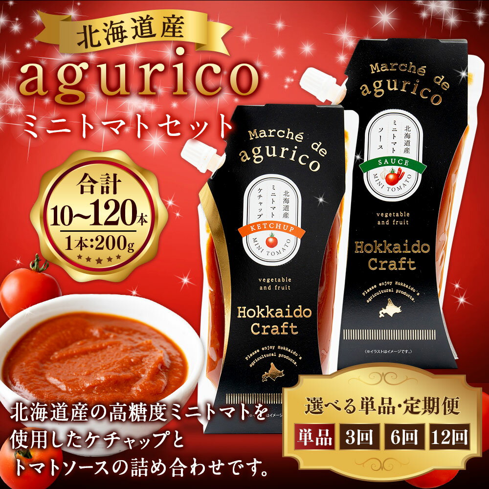 【ふるさと納税】<選べる単品・定期便>agurico ミニトマトセット ミニトマトケチャップ・ミニトマトソース 1回あたり計2kg(200g×10本) 各5本 1ヶ月毎 3回 6回 12回 調味料 パスタ ラザニア 詰め合わせ 北海道産 国産 北海道 浦臼町 送料無料