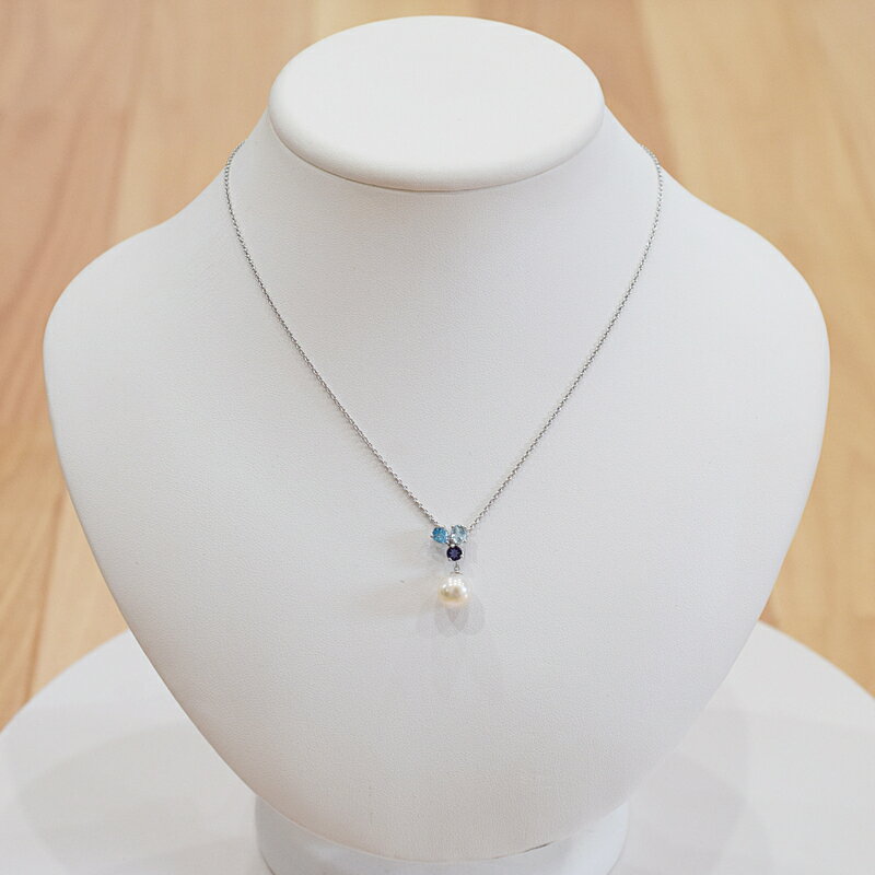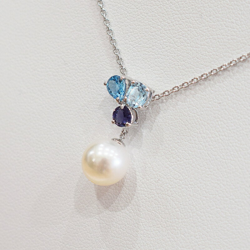 【ふるさと納税】ネックレス あこや真珠 9mm - 9.5mm ホワイトピンク 真珠 パール 半貴石 スカイブルートパーズ ブルートパーズ アイオライト シルバー SV925 アクセサリー ジュエリー 品質保証書 ジュエリーケース 真珠てりクロス お取り寄せ 熊本県 天草市 送料無料