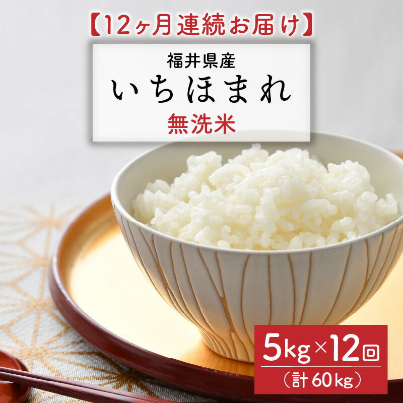 - 【ふるさと納税】【令和7年産・新米】定期便 ≪12ヶ月連続お届け≫ 福井県のブランド米 いちほまれ 無洗米 5kg × 12回 計60kg 【 無洗米 人気 品種 ブランド米 特A 】