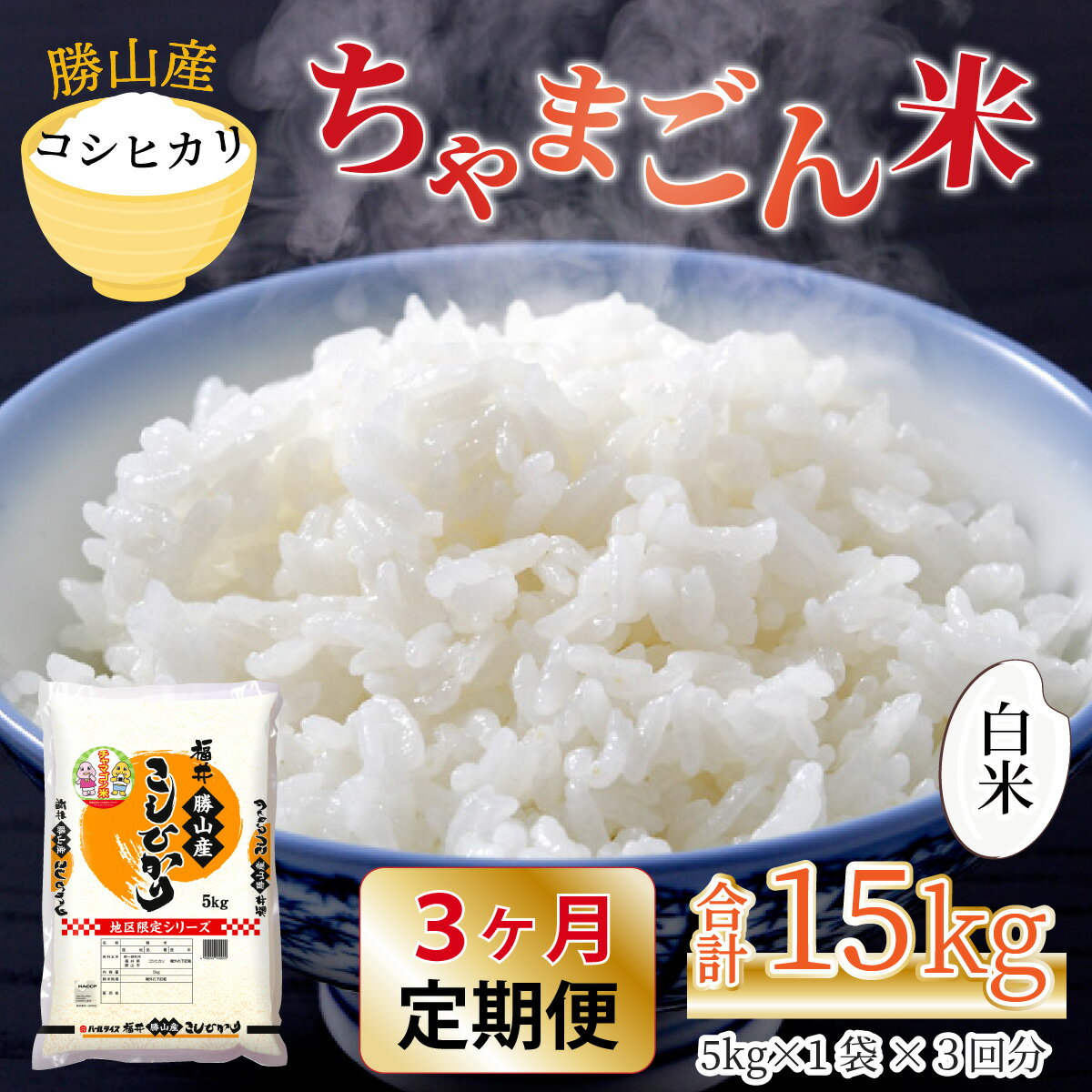 - 【ふるさと納税】【令和7年産 新米】【定期便3ヶ月連続】勝山のお米 コシヒカリ 精米 5kg(計 15kg) / お米 白米 ご飯 ブランド米 国産 北陸 福井県産 勝山市