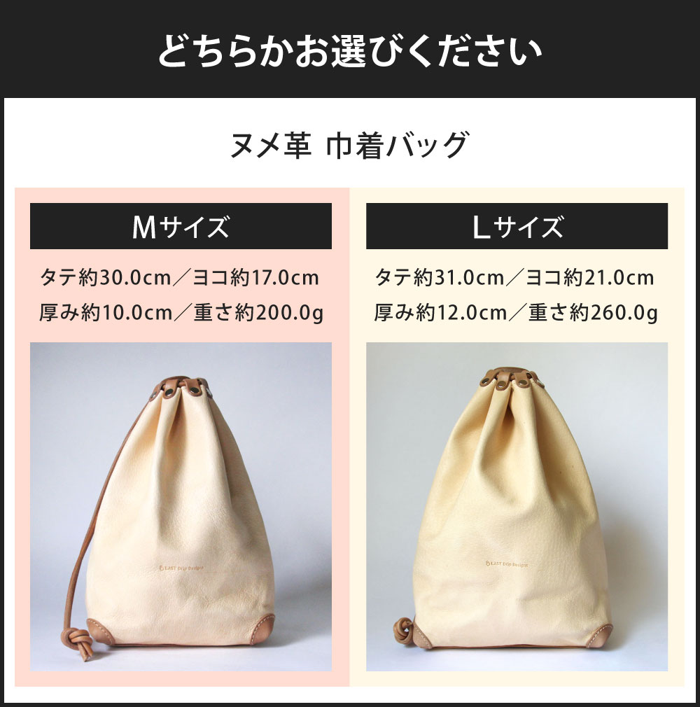 - 【ふるさと納税】ヌメ革 巾着バッグ <選べる> Mサイズ または Lサイズ 合切袋 ノンファンデーションレザー 本ヌメ革 豚革 牛革 レザー ヌメ 小物 革製品 おしゃれ ハンドメイド 受注生産 送料無料