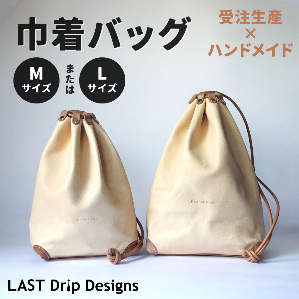 【ふるさと納税】ヌメ革 巾着バッグ <選べる> Mサイズ または Lサイズ 合切袋 ノンファンデーションレザー 本ヌメ革 豚革 牛革 レザー ヌメ 小物 革製品 おしゃれ ハンドメイド 受注生産 送料無料
