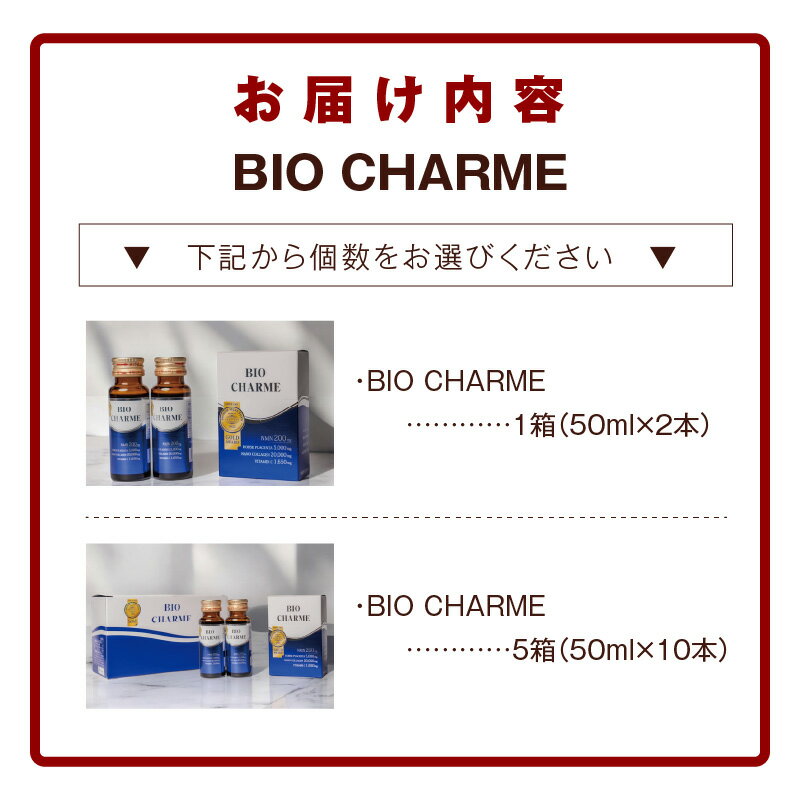 【ふるさと納税】BIO CHARME 選べる 内容量 50ml × 2本 1箱 / 5箱 エイジングケア 美容ドリンク NMN 美容 ビタミン セラミド コラーゲン プラセンタ ハリ 弾力 ヒアルロン酸 お取り寄せ 大阪府 泉佐野市 送料無料