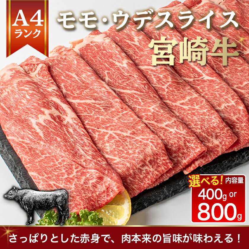 - 都城産宮崎牛モモ・ウデスライス800g - 牛肉 A4ランクの国産ブランド牛 牛もも肉 牛うで肉 株式会社 野上食品 送料無料 MJ-2607【宮崎県都城市は令和2年度ふるさと納税日本一!】