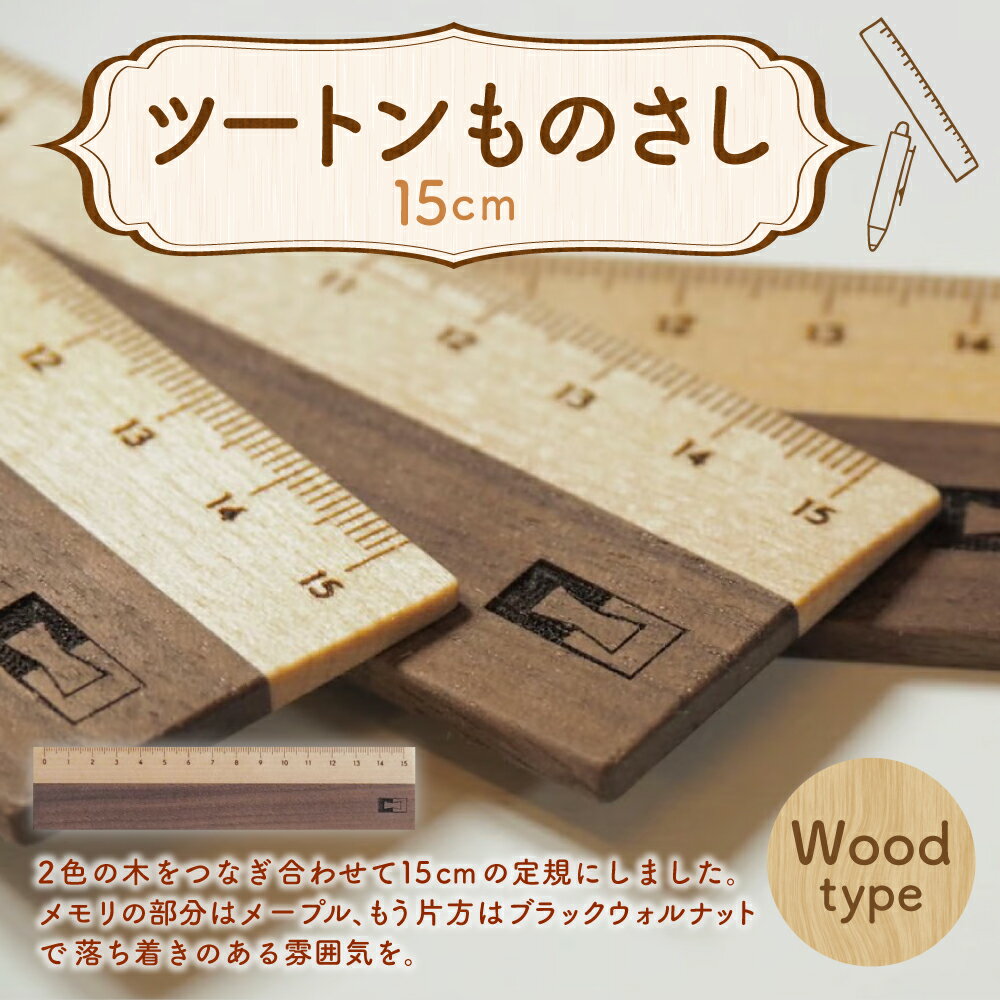 【ふるさと納税】ツートンものさし 15cm メープル ウォールナット 木製 2色 木材 定規 メモリ 文房具 小物 雑貨 北海道 北広島市加工 送料無料