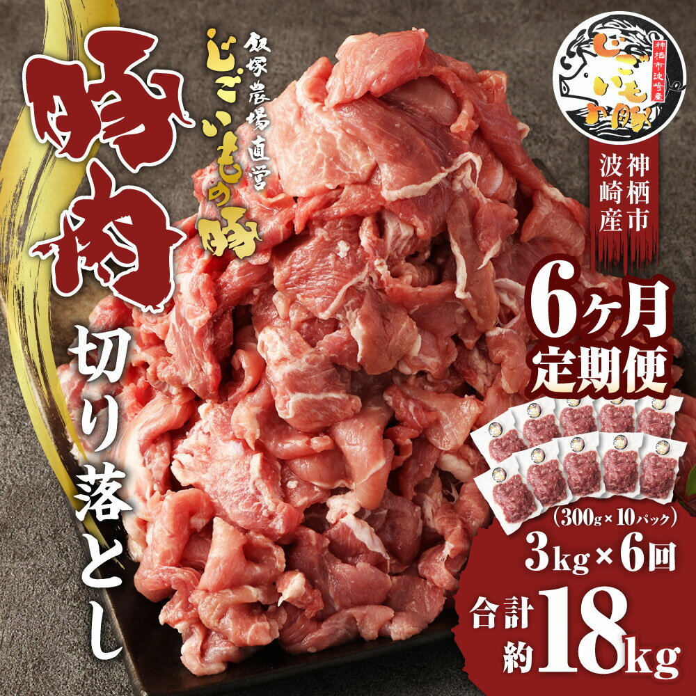 【ふるさと納税】【6ヶ月定期便】じごいもの豚 豚肉 切り落とし 約3kg 300g×10パック 合計18kg 定期 国産 豚 茨城県 神栖市 冷凍 送料無料