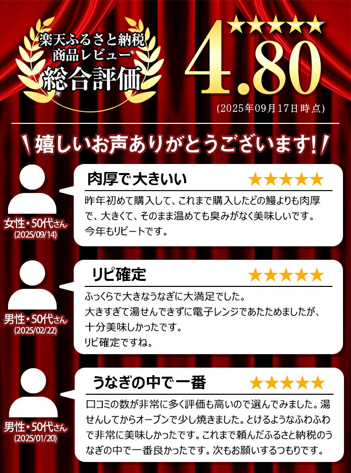 国産うなぎ 関西風蒲焼 大サイズ3枚(合計約450g)薬味付【太地グルメ市場】