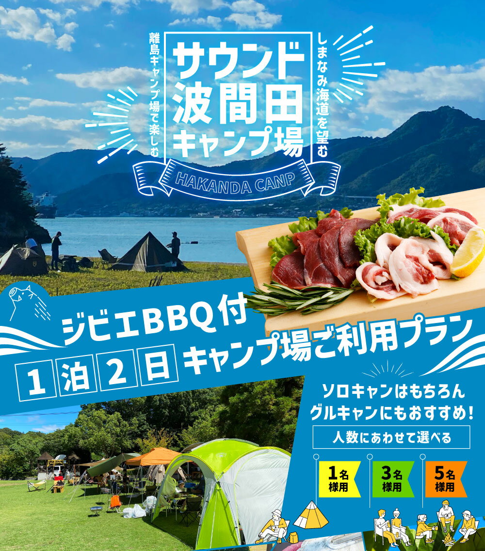 - 【ふるさと納税】ジビエBBQ付 1泊2日 キャンプ場 ご利用 プラン 引換券 〈選べる 人数〉1人 / 3人 / 5人様用 キャンプ アウトドア BBQ レジャー 宿泊券 旅行券 チケット 利用券 送料無料 【えひめの町(超)推し!(上島町)】(465) (466) (467)