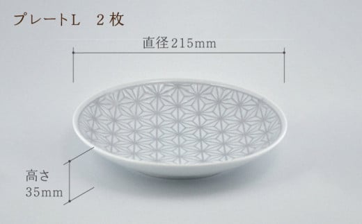 - 【波佐見焼】《限定カラー》麻の葉 グレー プレート Lサイズ 2枚【聖栄陶器】 [TG21]