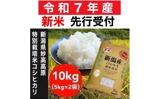 【令和7年産新米・先行予約】新潟県妙高高原減農薬特別栽培米コシヒカリ 10kg(5kg×2袋)【10月下旬から11月上旬発送予定】