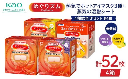 《めぐりズム》 4種詰合せセット(蒸気でホットアイマスク3種+蒸気の温熱シート 各1箱) 計52枚 F2Y-6136