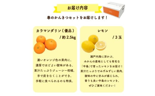 【先行予約】カラマンダリン 家庭用(優品) 約2.5kg & 瀬戸内海の島レモン 3玉 セット | 柑橘 レモン みかん 蜜柑 mikan 檸檬 オレンジ かんきつ セット【2026年3月下旬頃から発送予定】 瀬戸内海 愛媛県 松山市 ココオ Koko'o