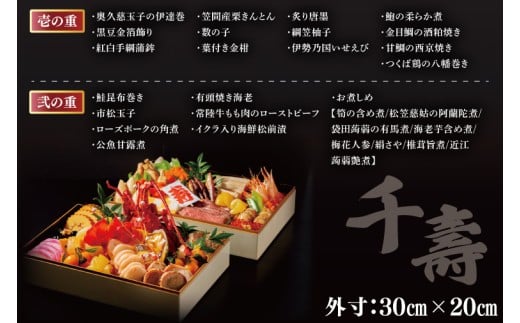 2026年【先行予約】ホテルテラスザガーデン水戸 千壽 和二段重(3~4人前)30㎝×20㎝【おせち おせち料理 お正月 正月 冷蔵配送 常陸乃国いせえび 伊勢海老 伊勢えび 常陸牛 ローズポーク つくば鶏 水戸市 茨城県】(JY-2)