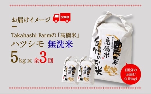 - [№5568-0425]全3回お届け定期便 岐阜県 揖斐川町産 ハツシモ「高橋米」無洗米 5kg×1袋 お米 精米 白米 ごはん 米 ご飯 はつしも ブランド米 大粒 炊飯 冷めても美味しい お弁当 冷凍保存 主食 ふっくら お取り寄せ お取り寄せ米 送料無料 揖斐川町