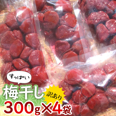 - 若狭のすっぱい梅干し 訳あり品 (300gを4袋、合計1200g) 紅映梅 シソ漬け 発酵食品 べにさし 加工食品 ご飯のお供 つぶれ梅